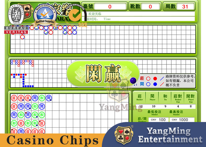 | Paramètre de fonction | 1. Il peut afficher les routes principales, les routes Zhuzi, les petites routes, les grands yeux, les routes d'oignons verts couramment utilisées à Macao (en utilisant la méthode de dessin standard des règles de Macao) 2. Avec la fonction d'affichage des statistiques de banque, de joueur, d'égalité et de paire 3. Toutes les fonctions ci-dessus peuvent être modifiées et actualisées automatiquement 4. Fournir spécialement la direction de demande du prochain tour 5. Lorsque chaque route est pleine, elle peut reculer automatiquement 6. Toutes les étapes de l'opération ont des conseils détaillés. |